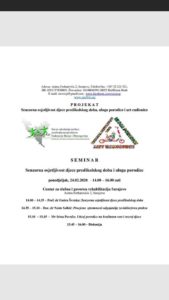 Dana 25.2.2020. godine održana je Art radionica u Predškolskom odjelu Centra i Seminar o senzornom portretu djece predškolskog doba u multimedijalnoj sali našeg Centra. Jedan od predavača na seminaru bio je naš kolega doc. dr. Naim Salkić. Organizator seminara je Savez udruženja osoba s cerebralnom paralizom FBIH koji svakim novim projektom obrađuje novu teškoću djece/osoba s CP.