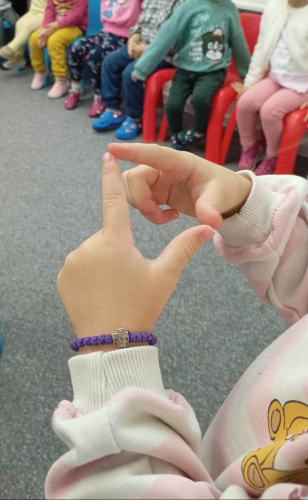 Tom prilikom naši mališani su svojim vršnjacima pokazali nekoliko pojmova na znakovnom jeziku i počastili ih recitacijama koje su pripremili zajedno sa svojom učiteljicom.
