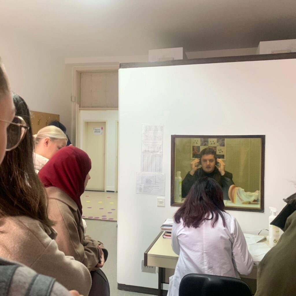 Direktorica Centra upoznala je studente s djelatnošću i misijom ustanove, nakon čega su, uz stručnu pratnju koordinatorice Emine Borovina, obišli ključne odjele Centra – senzornu sobu, predškolski i osnovnoškolski odjel te Odjel za dijagnostiku i rehabilitaciju. Tokom obilaska upoznali su se s verbotonalnom metodom rada, savremenom elektroakustičkom opremom, kao i sa specifičnostima rada s djecom oštećenog sluha i govora te djecom s drugim razvojnim poteškoćama.