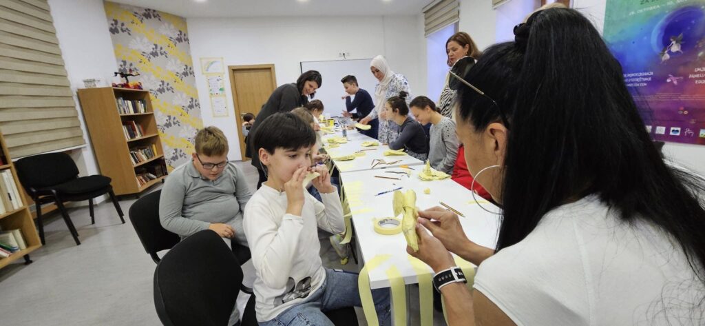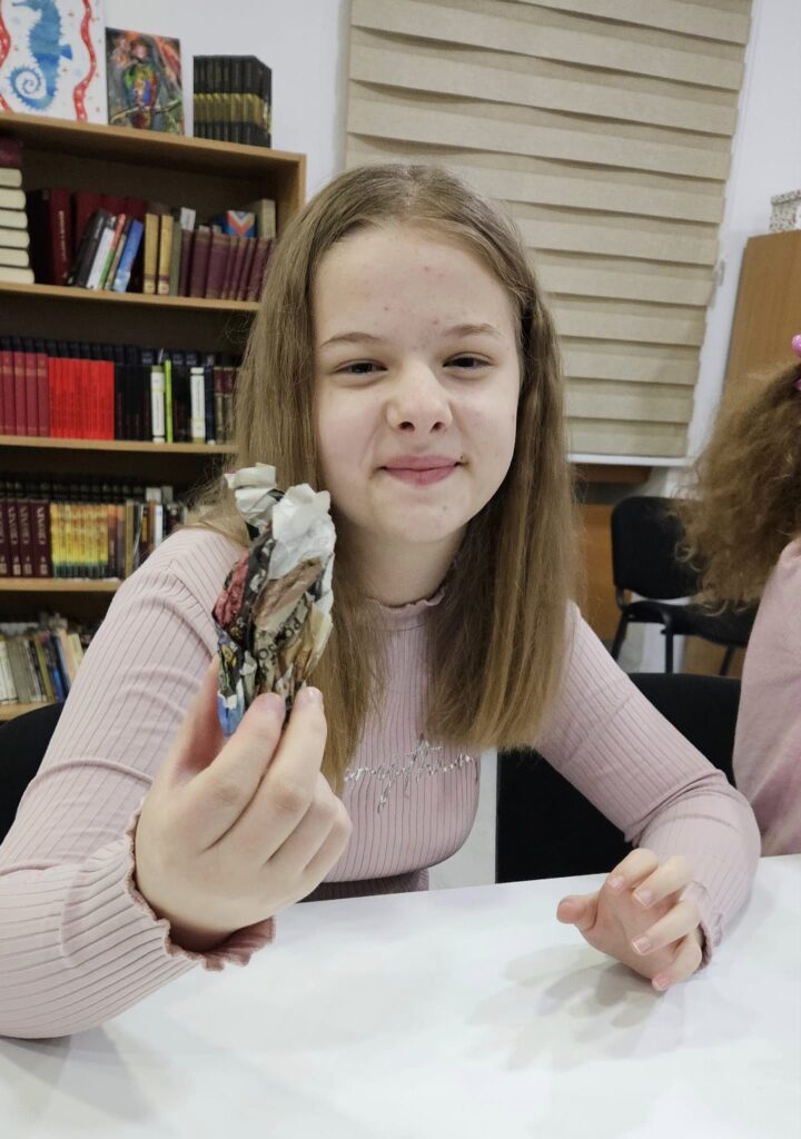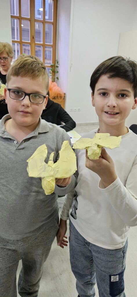 Djeca su pravila “Ptice iz mašte” koristeći karton i novinski papir. Tokom kreativnog rada, saznali su mnogo zanimljivosti o pticama, važnosti recikliranja za očuvanje naše planete i još puno toga. Sve ptičice će dovršiti u školi i oslikati raznobojnim bojama. Uz ovu radionicu povezali smo i nastavne teme, učeći o pticama i čitajući priču “Plamena”.