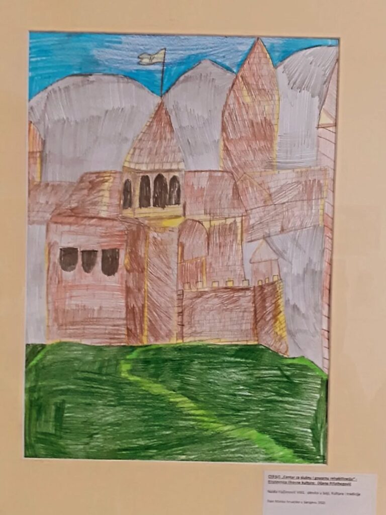 Posebno ističemo učenicu Ajlu Alimanović, čiji je likovni rad bio izložen među odabranim djelima. Ajla je prisustvovala svečanom otvaranju izložbe zajedno sa svojom mentoricom, nastavnicom Dijanom Rifatbegović, koja je učenice s velikom posvećenošću pripremala i podržavala tokom cijelog procesa.