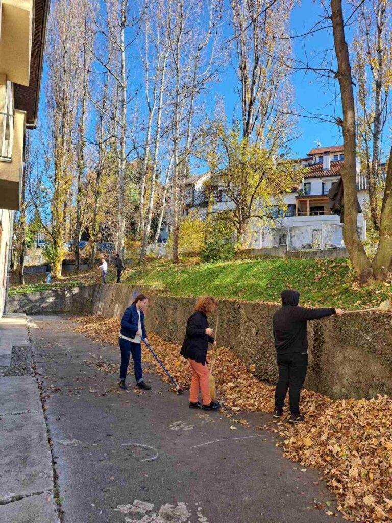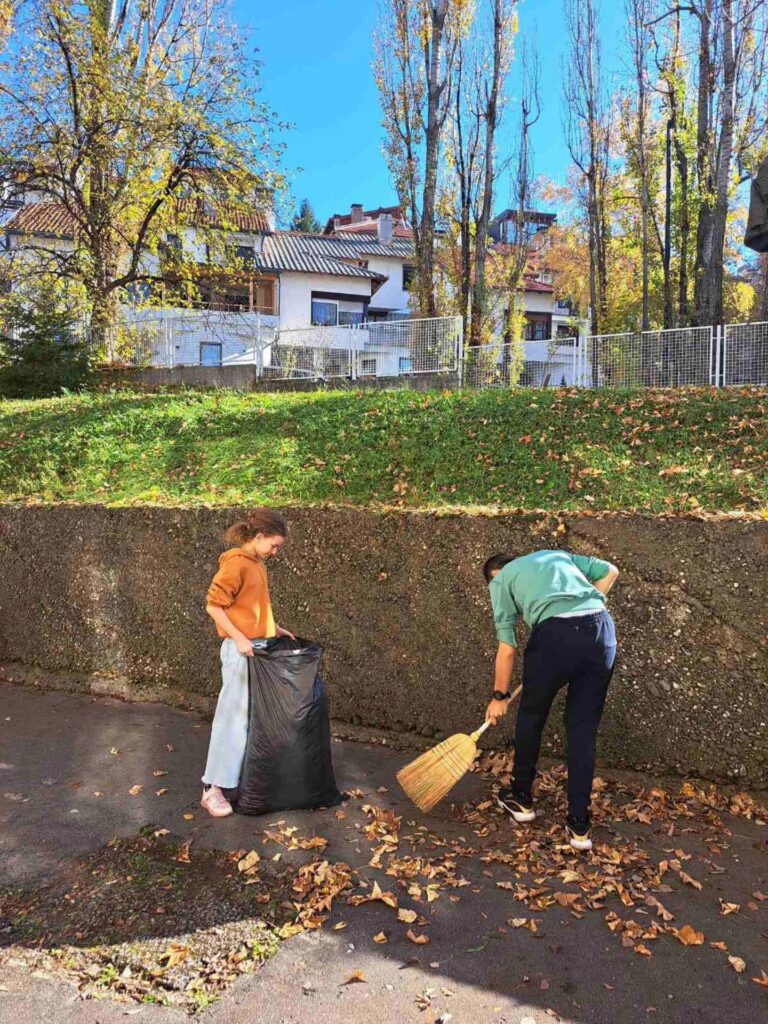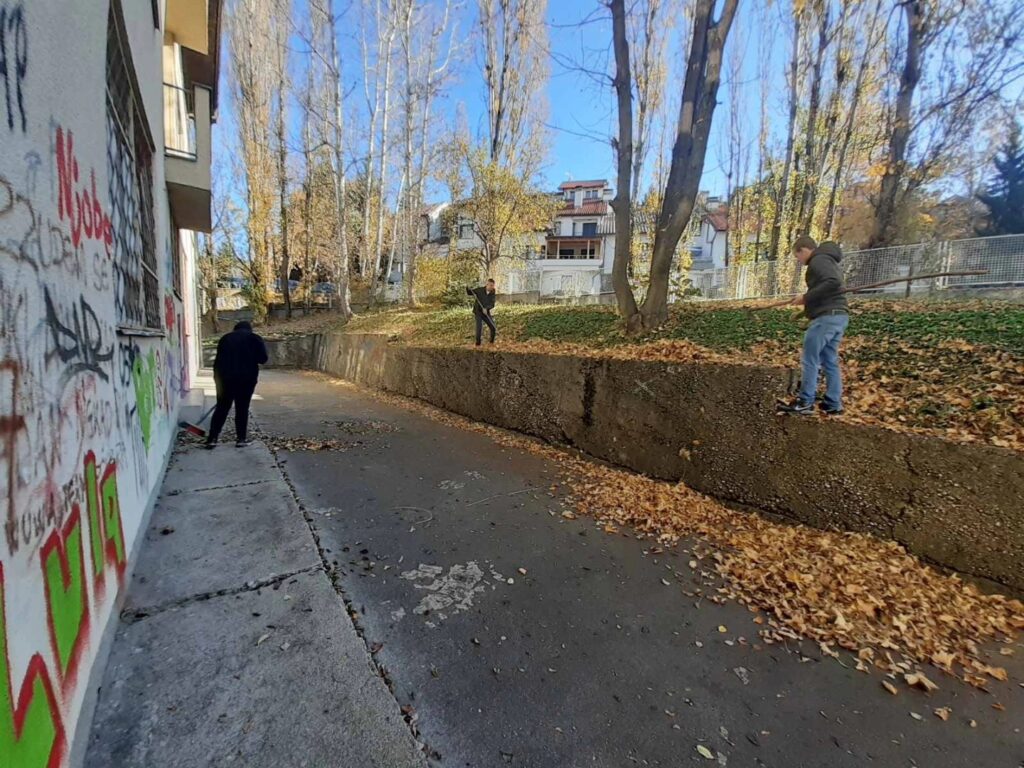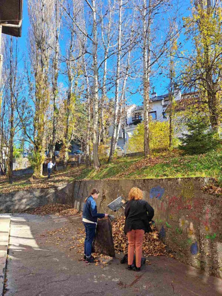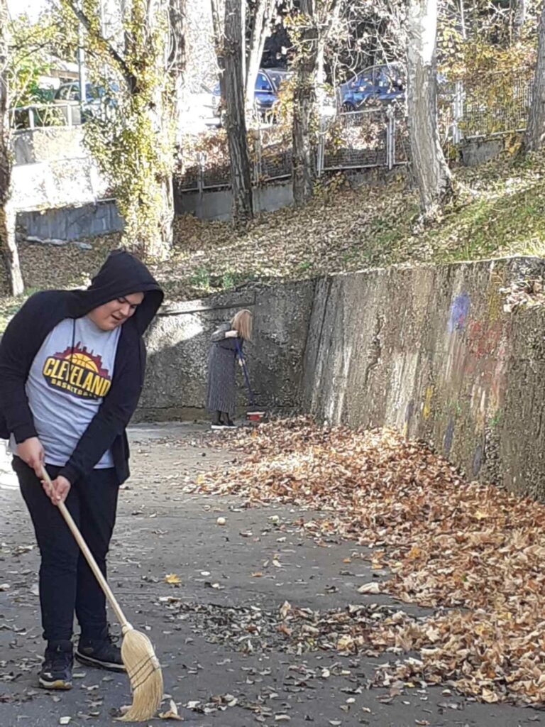 U sklopu obaveznog programa društveno korisnog učenja, učenici su uređivali dvorište sakupljajući i odlažući lišće koje je opalo.