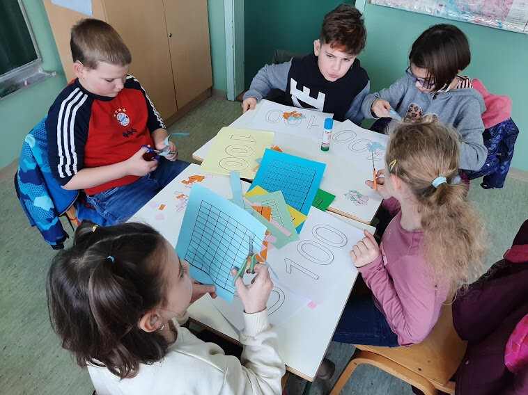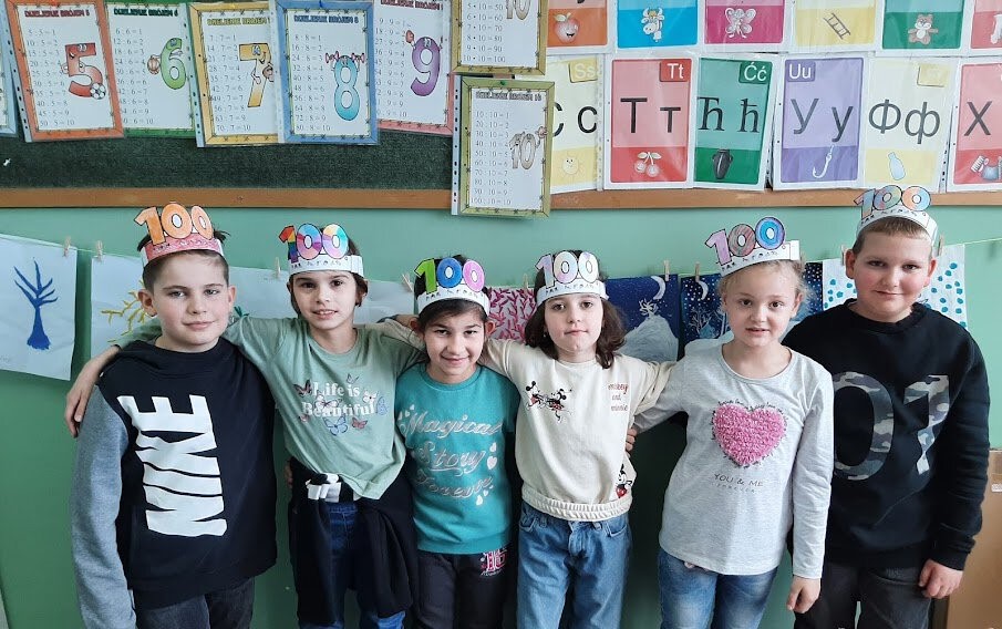 100. dan škole u 3-2/4-1 razredu je obilježen nizom zanimljivih aktivnosti, kojima smo kroz igru istraživali broj 100. Realizovali smo deset aktivnosti: Složi digialne puzzle, Izrada krune, Matematički bingo, Mozak-broj 100, Ko će prije do 100 (gdje smo promovisali aplikaciju slikovnirječnik.ba nastalu u našem Centru), 100 pojmova iz Moje okoline, Slikovna sportska abeceda-Kako se zoveš, 100 plesnih koraka i dr. Na kraju realizacije učenici su dobili diplome o učešću i izradili evaluaciju projekta.