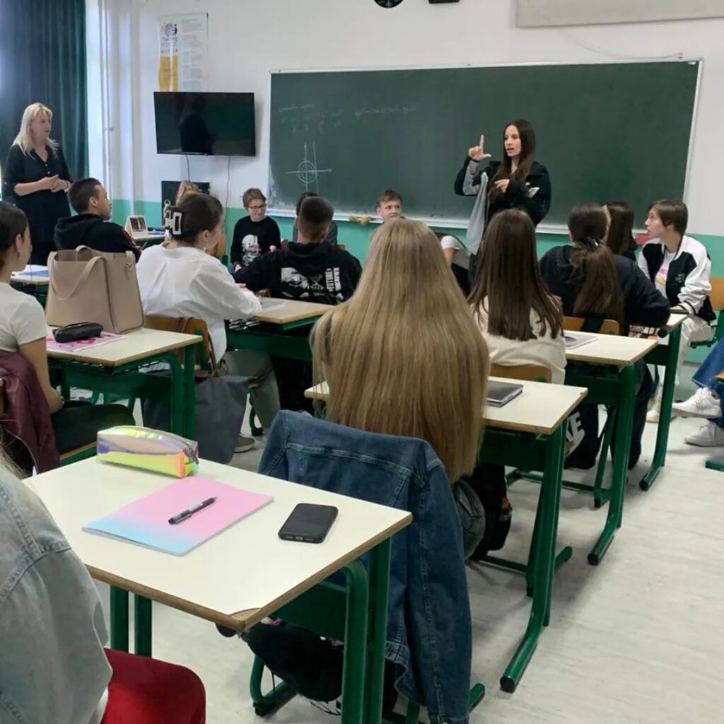 26.9.2024. godine, u okviru obilježavanja Međunarodne sedmice gluhih jedan dio naših srednjoškolaca je posjetio Srednju ekonomsku školu u Sarajevu i njihovo odjeljenje III-1.