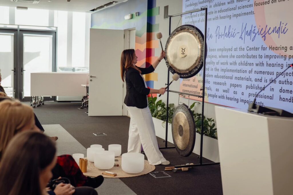 Posebno smo ponosni što je jedna od predavačica bila dr. sc. Meliha Povlakić Hadžiefendić, koja je govorila o značaju znakovnog jezika i savremenim komunikacijskim rješenjima u radu s gluhim i nagluhim osobama. U svom izlaganju predstavila je i konkretne digitalne alate koji doprinose dostupnosti komunikacije – aplikaciju slikovnirjecnik.ba te web-stranicu Znakovni jezik, kao primjere savremenih, praktičnih i pristupačnih rješenja koja unapređuju inkluziju u svakodnevnom životu i obrazovanju.