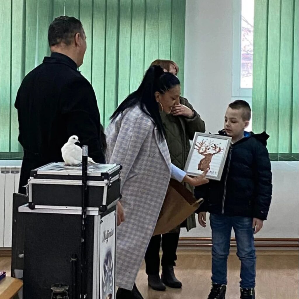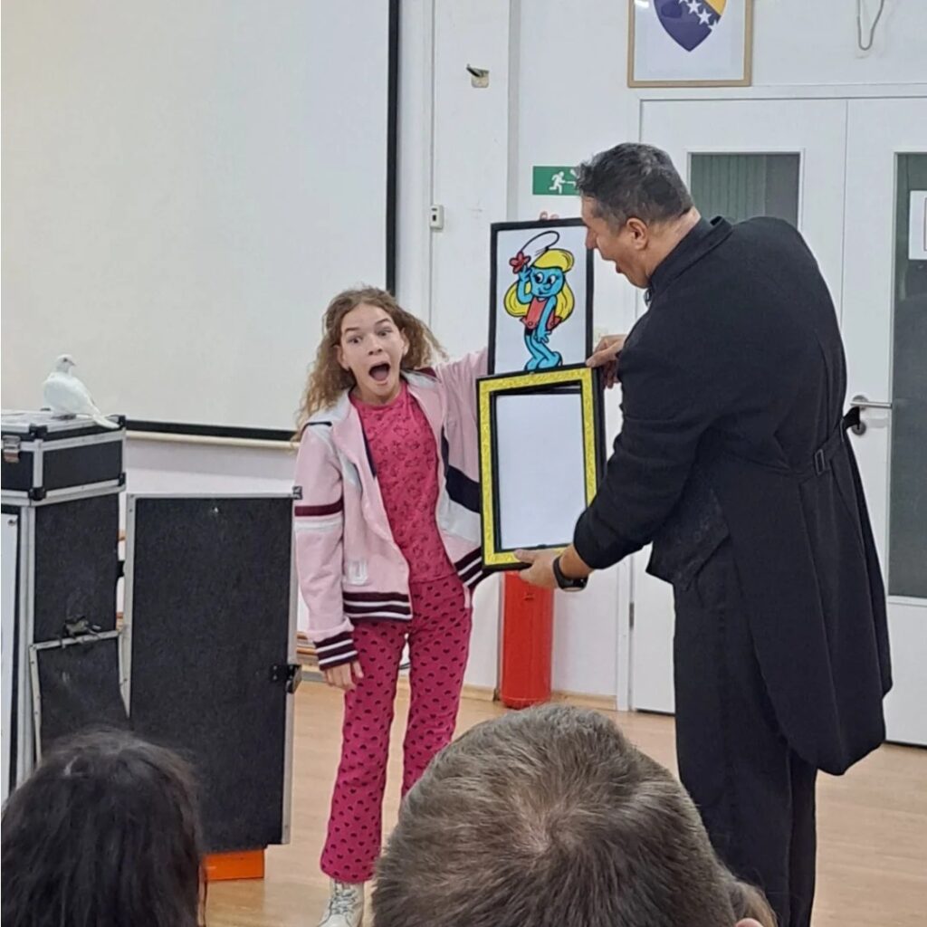 Posebno dirljiv trenutak dogodio se na kraju predstave, kada je naš učenik Mak Varešić, u znak zahvalnosti, mađioničaru Almiru poklonio svoj crtež kao uspomenu na ovaj poseban dan.