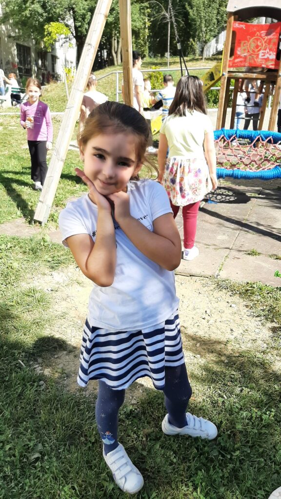 Lijepo i sunčano vrijeme je naše najmlađe izmamilo u školsko dvorište u kojem rado provode školski odmor u druženju i igri. Uživali smo u njihovim osmjesima i zajedničkoj igri a njima se pridružila i jedna neobična maca, kojoj su se djeca veoma obradovala. Djeca najbolje uče uz igru kroz koju im razvijamo ljubav i brigu prema životinjama.