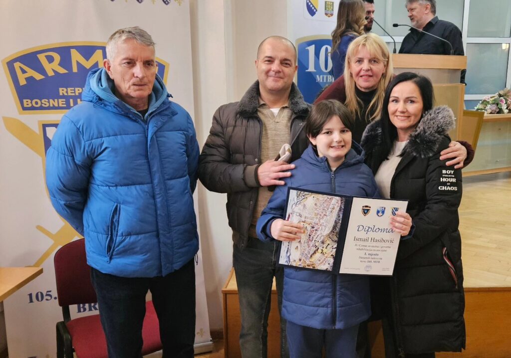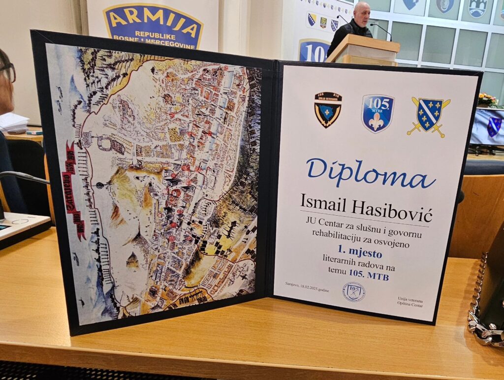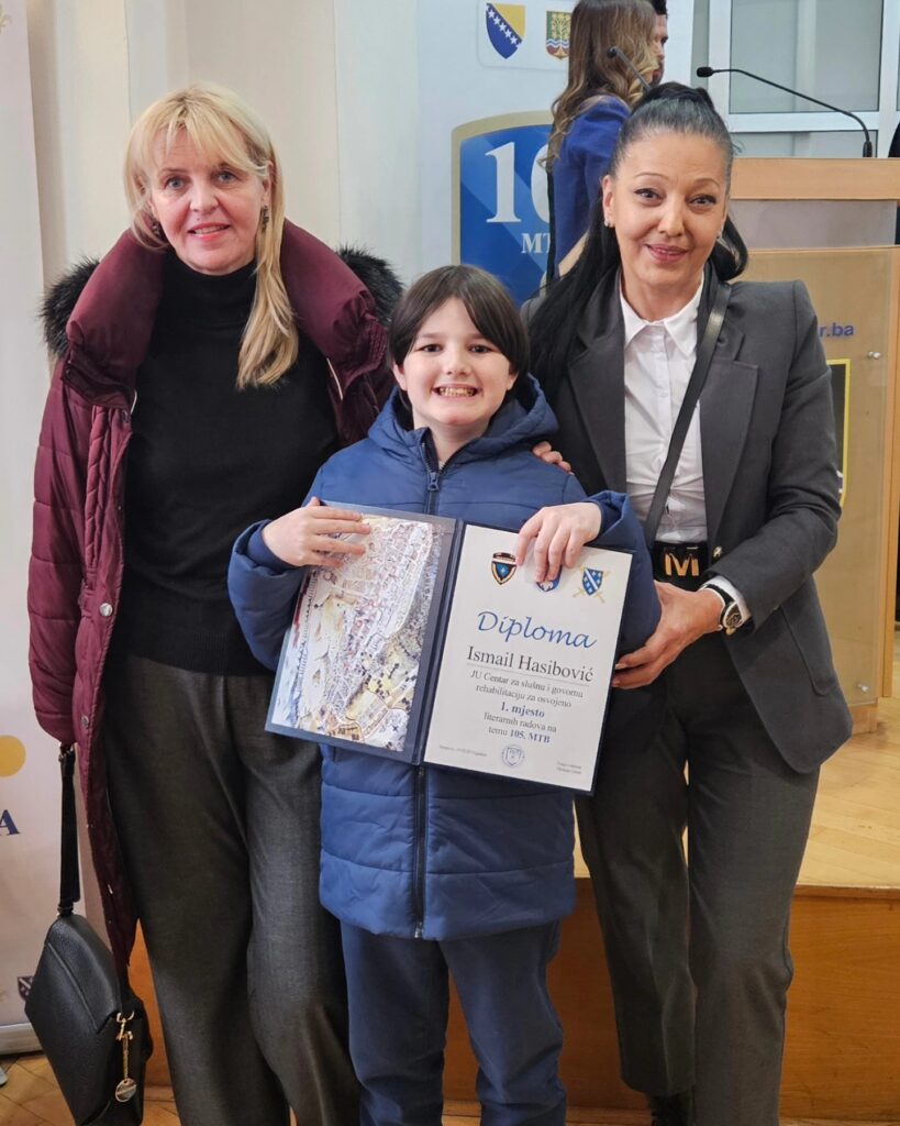 S neizmjernim ponosom dijelimo radosnu vijest – naš učenik Ismail Hasibović osvojio je prvo mjesto na literarnom konkursu za učenike osnovnih škola sa područja Općine Centar, povodom obilježavanja 32. godišnjice 105. motorizovane brigade. Njegova pjesma nije samo nagrađena – ona je dotakla srca svih prisutnih na svečanoj sjednici Općinskog vijeća Centar, gdje ju je pročitao pred mnogobrojnim zvanicama.