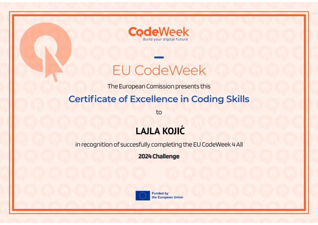Čestitamo našim učenicima na ovom uspjehu i radujemo se novim izazovima u budućnosti, posebno EU Code Weeku 2025, koji će se održati od 14. do 27. oktobra!