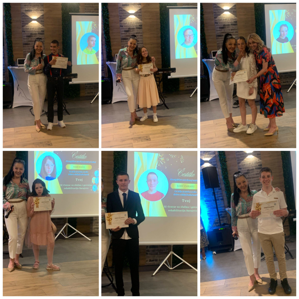 Uslijedio je govor naše direktorice, mr. Belme Hamzić – emotivan, iskren i posvećen baš onima zbog kojih smo svi te večeri bili tu. Govor koji se ne zaboravlja i koji nikog nije ostavio ravnodušnim. Svakom maturantu uručena je zahvalnica, uz nježne riječi koje su ih opisivale – kao jedinstvene ličnosti, kao srca našeg Centra. I nisu to bile samo riječi – bile su to istine utkane u svako dijete koje je ostavilo neizbrisiv trag u našoj ustanovi. Zahvalnice su dobile i njihove razrednice i kolegice koje su zajedno s njima stajale na prvim linijama obrazovanja i odgoja.