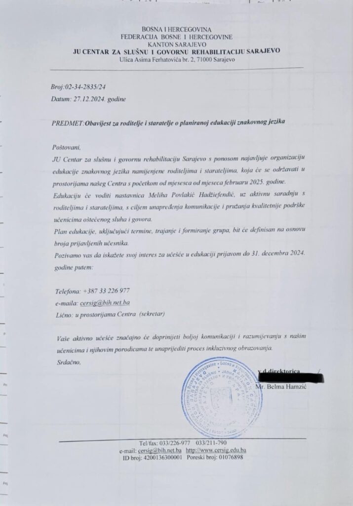 Obavijest za roditelje i staratelje o planiranoj edukaciji znakovnog jezika In: Obavještenja By: admin 0 Comment 288 Views Share this post: