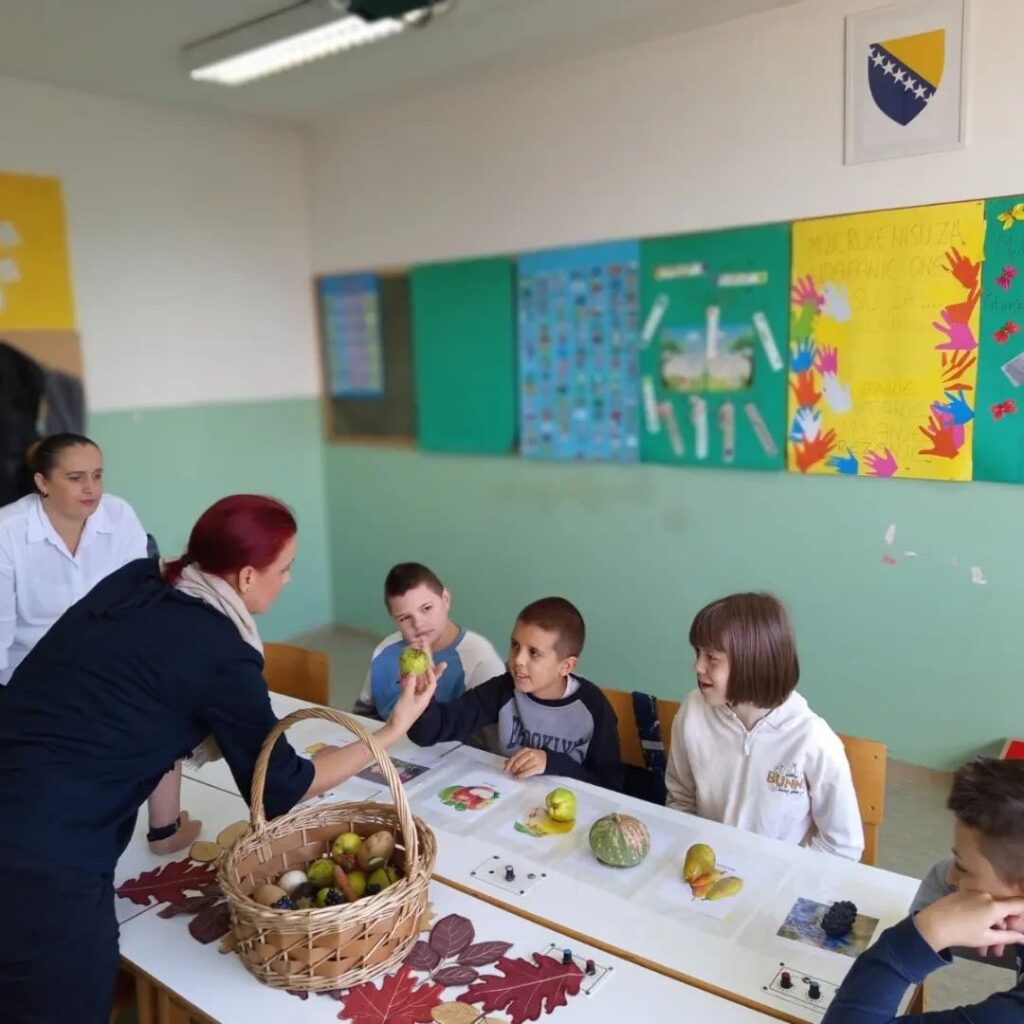 Na času bosanskog jezika i književnosti, učenici VI-1 i VII-2, zajedno s nastavnicom Arsenom Čičkušić i asistentima, realizovali su temu “Plodovi jeseni”.