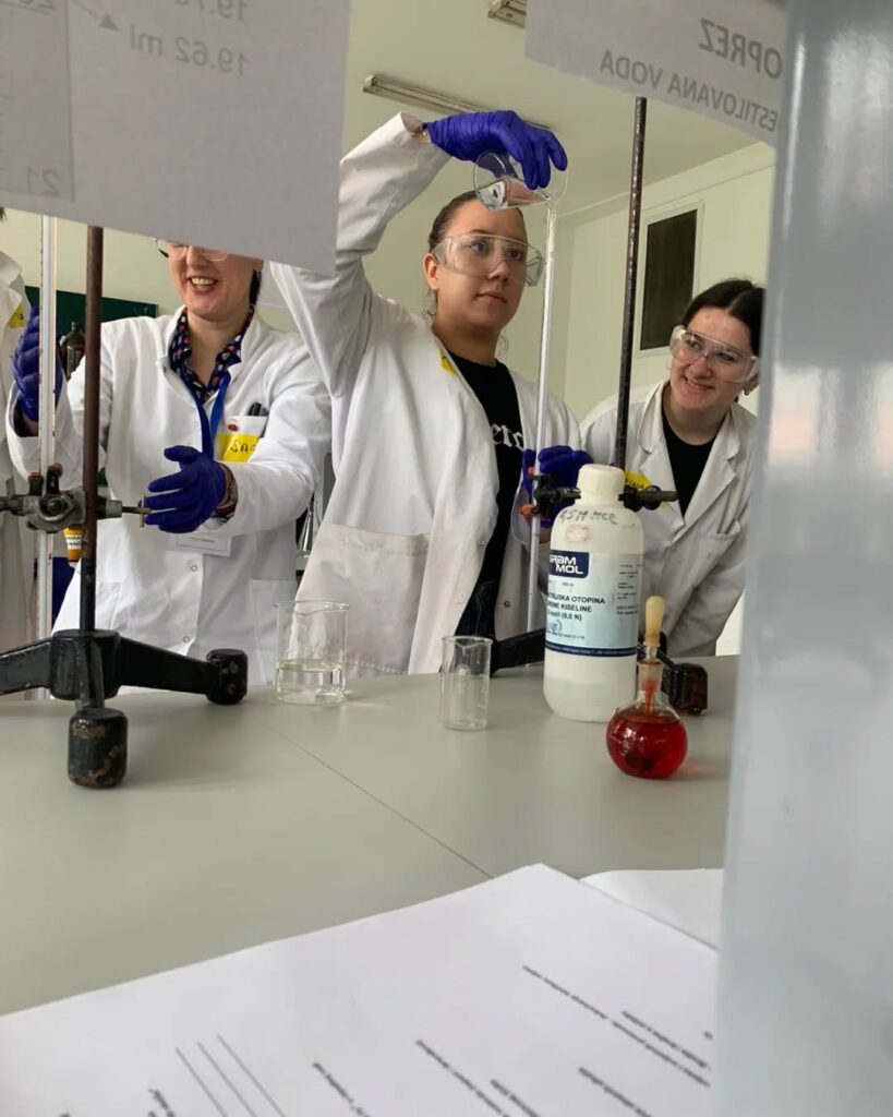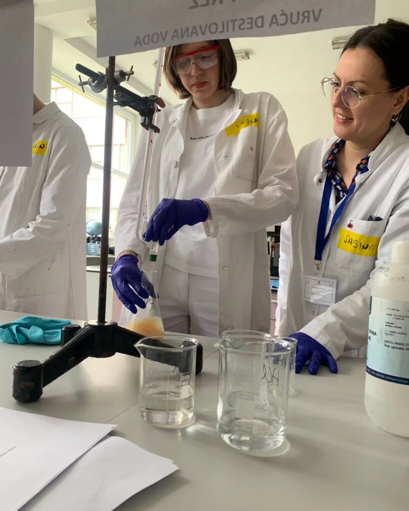 Tokom ove inspirativne posjete, učenici su imali priliku družiti se sa studentima Odsjeka za hemiju, kao i aktivno učestvovati u izvođenju zanimljivih eksperimenata iz analitičke hemije.