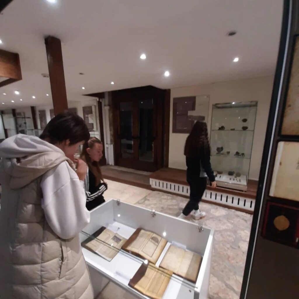 Srednjoškolci JU Centar za slušnu i govornu rehabilitaciju, drugi razredi, danas 1.10. 2025.godine su u pratnji razrednika, posjetili su izložbu “Istočno od Zapada, zapadno od Istoka” – Rukopisna ostavština dr.Safet bega Bašagića” u Brusa bezistanu.