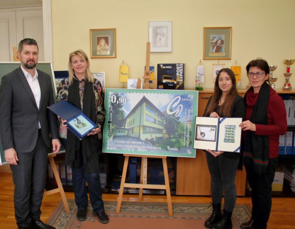 JP BH POŠTA u prostorijama Generalne direkcije ugostila predstavnike JU Centar za slušnu i govornu rehabilitaciju i promovirala poštansku marku za fotografijom Centra.