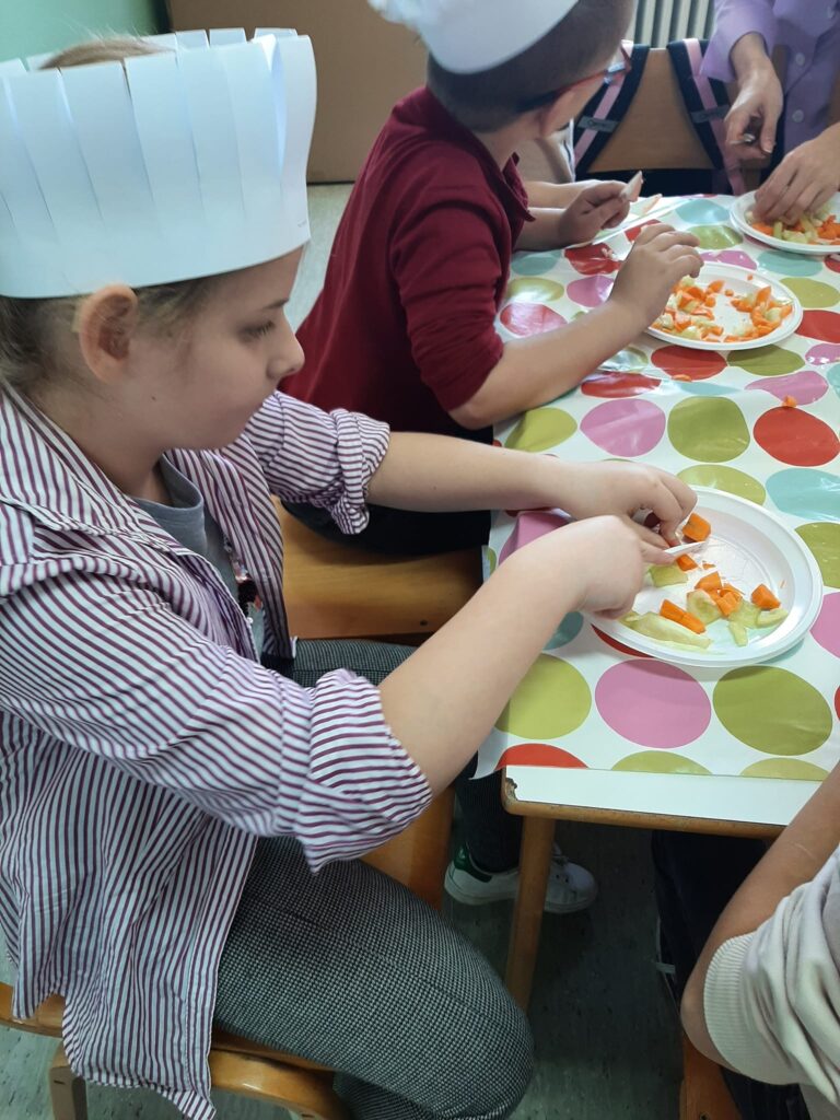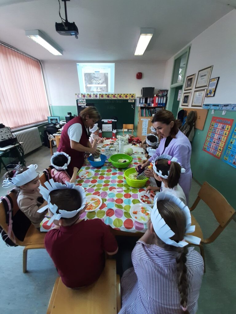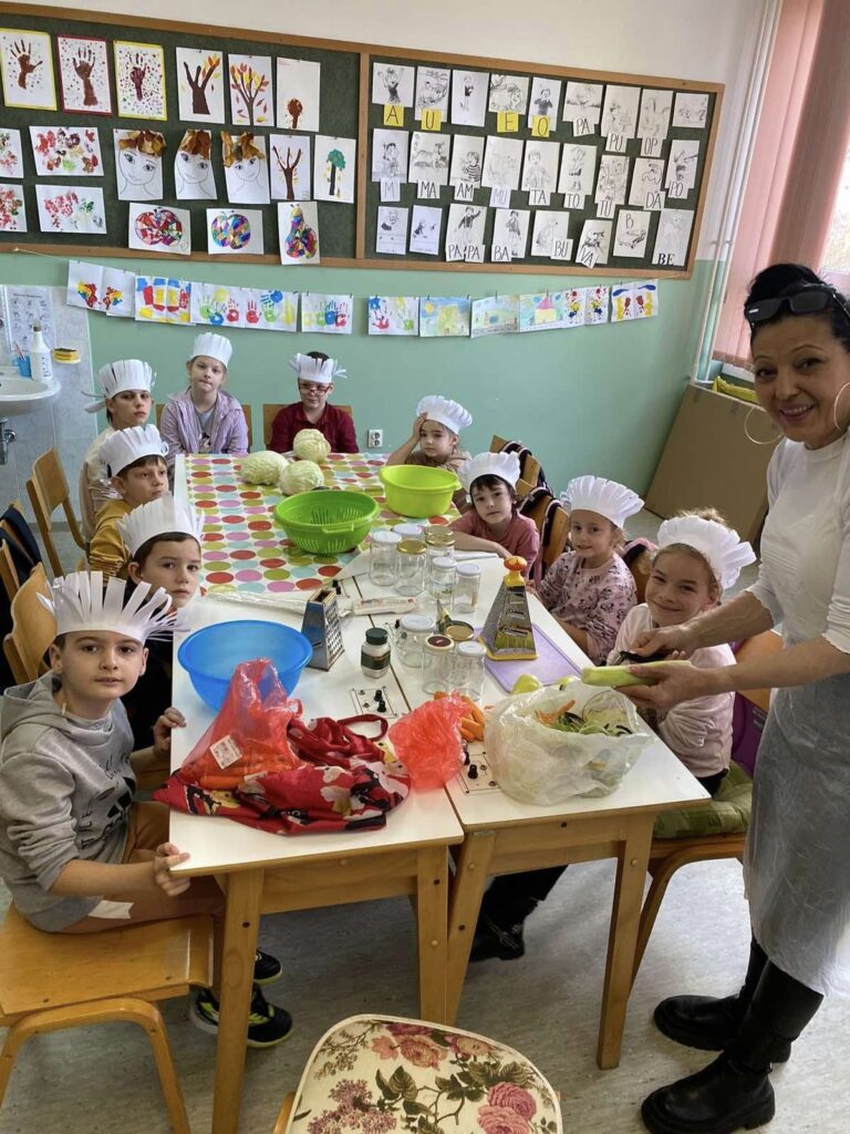Jesen je već odavno prirodu obojila najljepšim bojama. Donijela nam je mnogo svojih plodova pa su tako učenici 1-2, 2-1, 2-2 i 3-1 uz pomoć svojih učiteljica Anele Talam, Belme Hamzić i teta Zakire odlučili iznenaditi svoje roditelje i pripremiti zimnicu. Pripremali su, čistili i sjeckali povrće i učili nove pojmove. Razgovarali su o zdravoj ishrani i istakli njen značaj za zdravlje ljudi. Aktivno su sudjelovali u svim aktivnostima a posebno su bili oduševljeni svojim staklenim teglicama, koje su napunili šarenom salatom. Uz druženje, igru i ples djeca su uživala u ovoj aktivnosti. Bila je ovo još jedna uspješno realizovana radionica gdje smo uz igru mnogo naučili ali i naučeno primjenili u praksi.