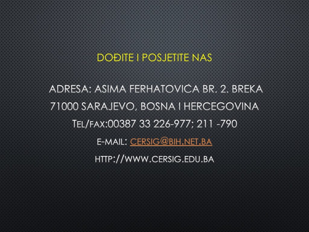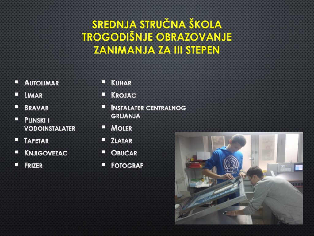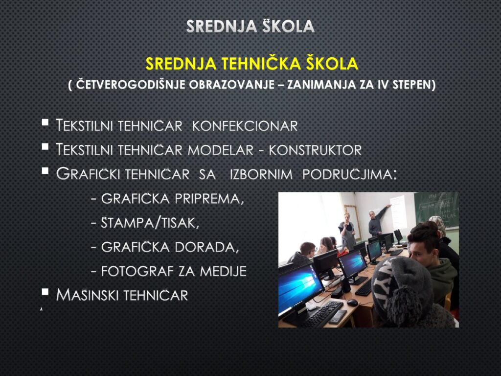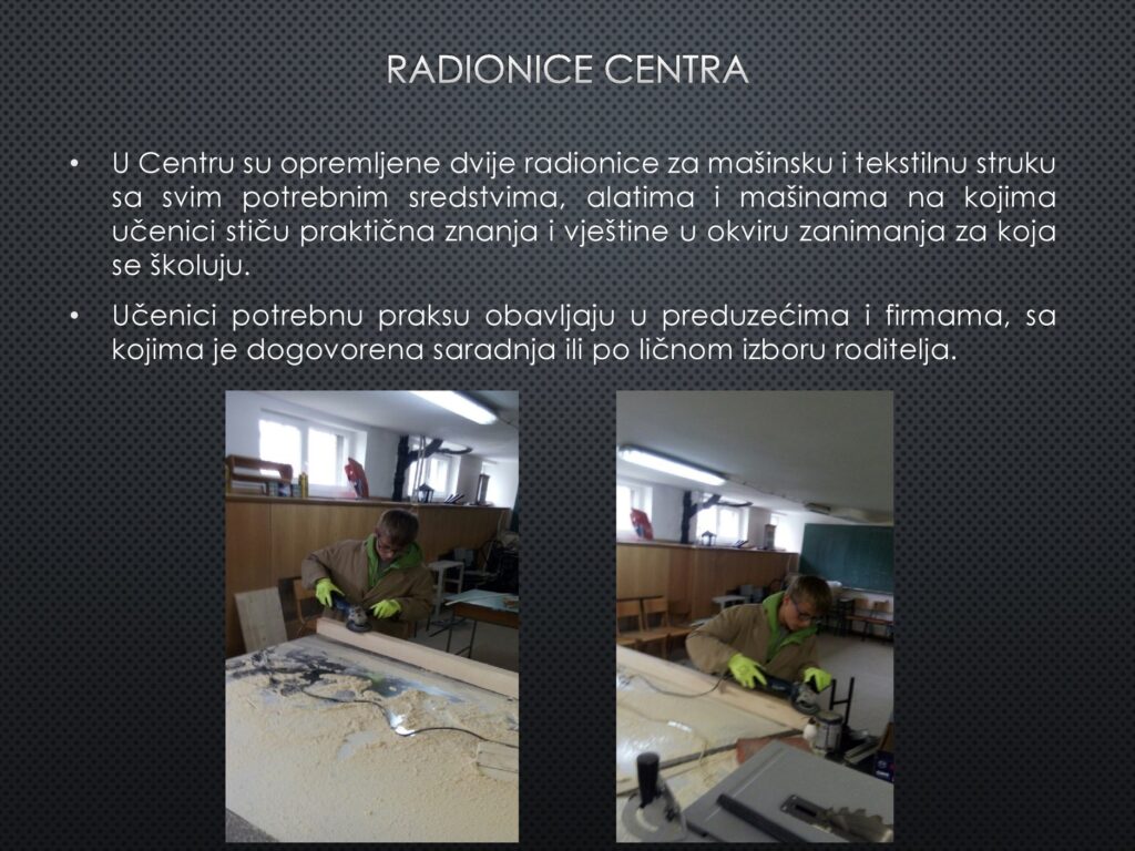 Poštovani, učenici i roditelji, upoznajte djelatnosti našeg Centra, a posebno Srednju školu i zanimanja koja možete upisati kod nas. Kompletnu prezentaciju možete pogledati u priloženom linku. Dobro nam došli!