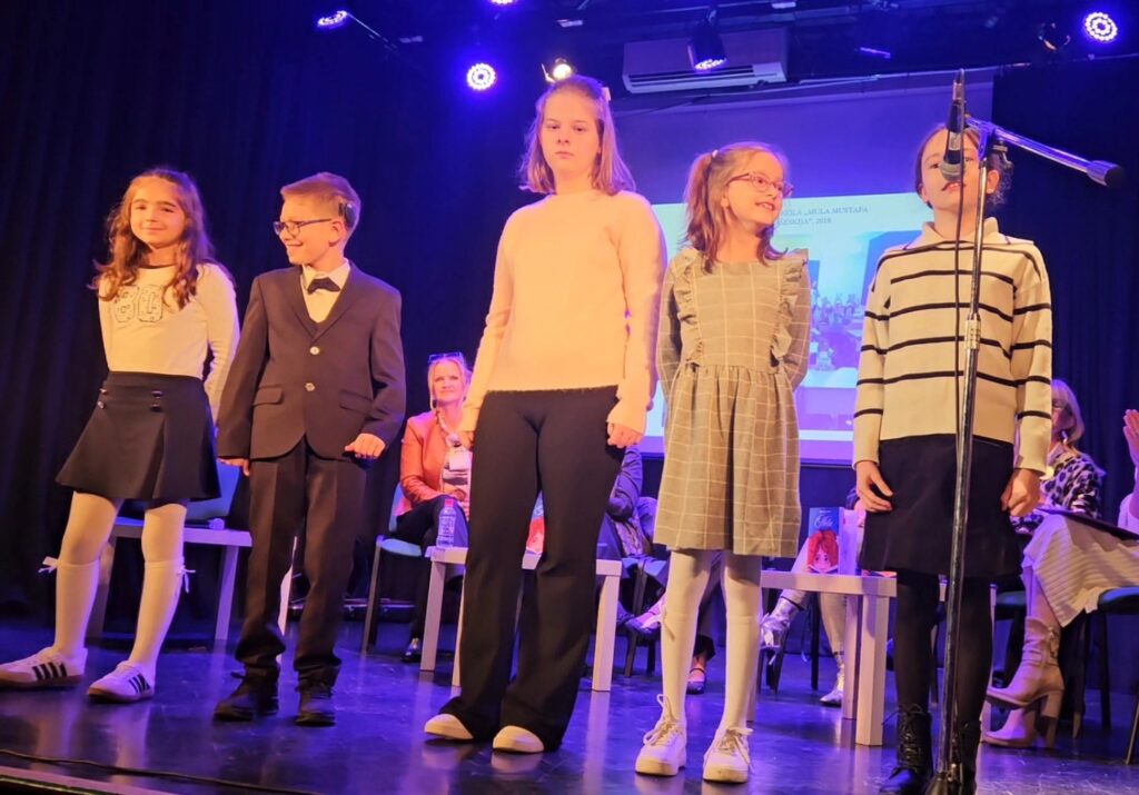 U prepunoj sali, u kojoj se tražilo mjesto više, naši učenici Lajla Kojić, Sara Durić, Nedžla Bećirović, Lejla Hasanović i Adnam Ališan izveli su emotivnu recitaciju pjesme „ Domovina“, pod stručnim vodstvom nastavnice Edise Kalajac. Njihov nastup bio je poseban trenutak večeri, publika ih je nagradila gromoglasnim aplauzom i iskrenim emocijama, a mnogi su, ganuti toplinom dječijih glasova, pustili suzu ponosa.