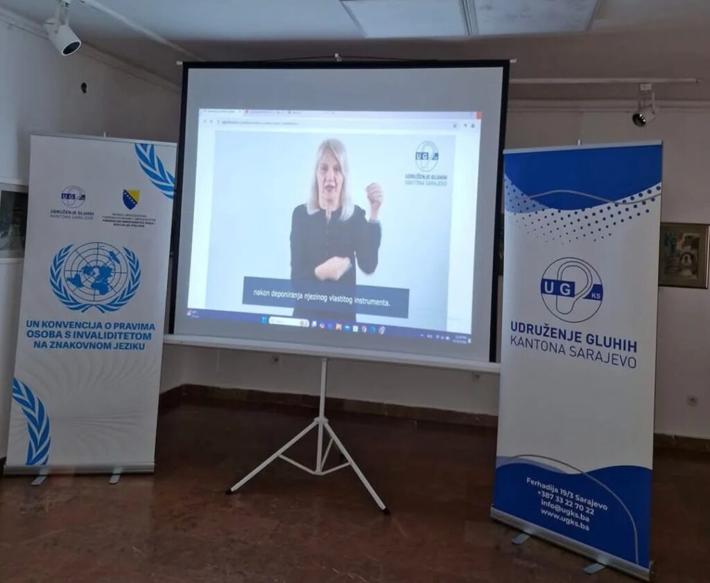 Povodom Međunarodnog dana ljudskih prava, u Muzeju književnosti i pozorišne umjetnosti BiH, Udruženje gluhih Kantona Sarajevo predstavilo je prvi prijevod UN Konvencije o pravima osoba s invaliditetom na znakovni jezik u Bosni i Hercegovini. Ovaj jedinstveni projekt, podržan od strane Federalnog ministarstva rada i socijalne politike, omogućava osobama sa oštećenim sluhom i govorom da se informiraju o svojim pravima brzo, jednostavno i dostojanstveno.