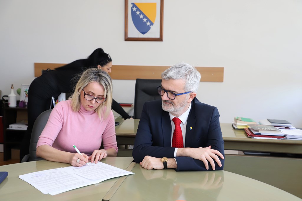 Načelnik Općine Centar Srđan Mandić sa pomoćnicom za obrazovanje, društvene djelatnosti, kulturu i sport Lejlom Dizdarević posjetio je danas Javnu ustanovu „Centar za slušnu i govornu rehabilitaciju“ gdje je sa direktoricom Melihom Povlakić-Hadžiefendić potpisao ugovor o realizaciji finansijskih sredstava za sanaciju i opremanje sportske sale.