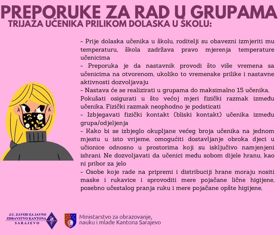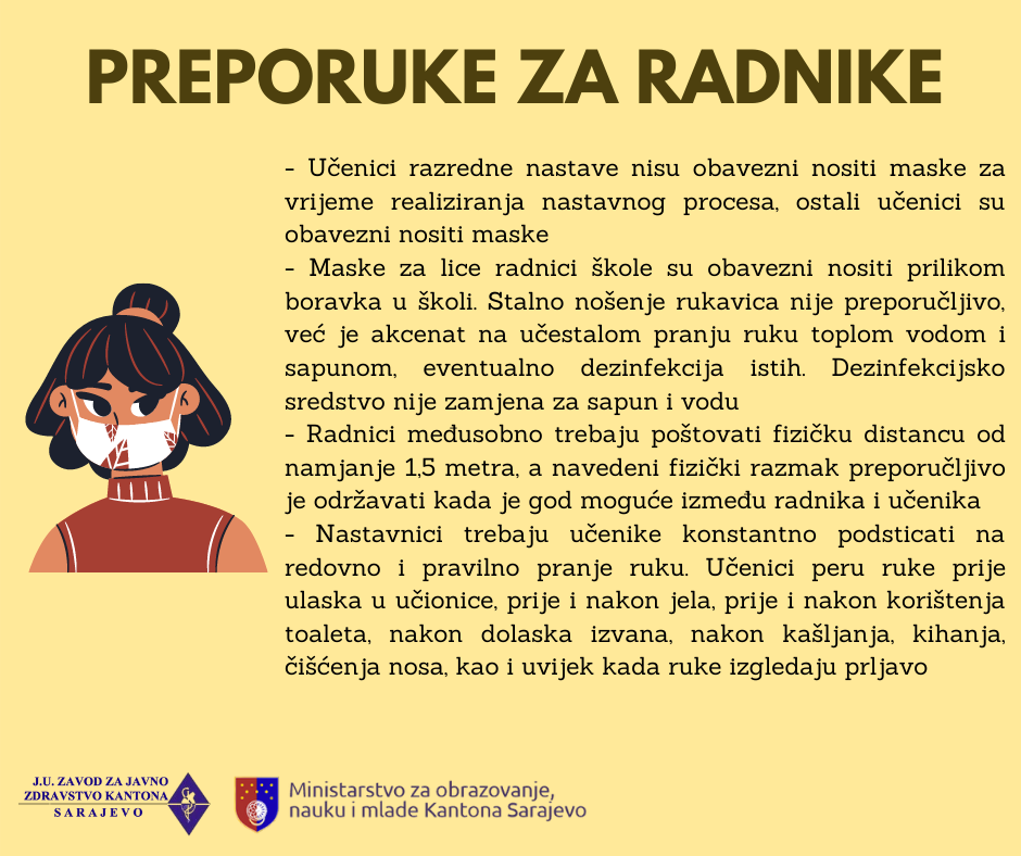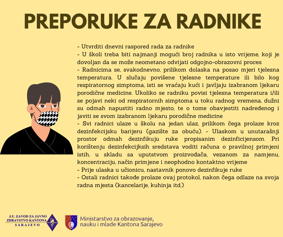 Na tematskoj sjednici su utvrđene i donesene smjernice za kontrolu infekcije COVID-19 u osnovnim i srednjim školama u Kantonu Sarajevo. Sve smjernice i preporuke, detaljno opisane možete pronaći na postovima ispod: