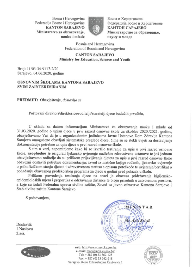 16 jun Upis djece u I razred osnovne škole-ljekarska uvjerenja In: Uncategorized By: admin 0 Comment 1188 Views Share this post: