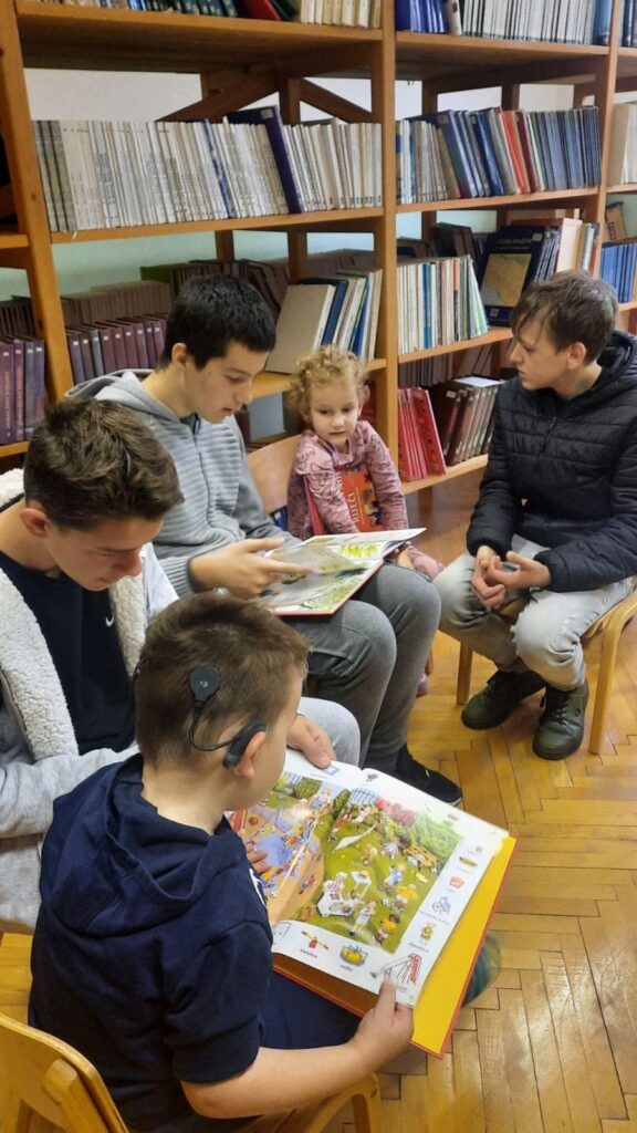 U povodu obilježavanja Nacionalnog dana svjesnosti o bibliotekama, naši slatki predškolci su učili sa drugarima iz osmog i devetog razreda. Jasmin, Ajdin, Almir i Emrah su bili pravi učitelji Nedimu, Džani i Aliju. Mali đaci su dobili puno petica…